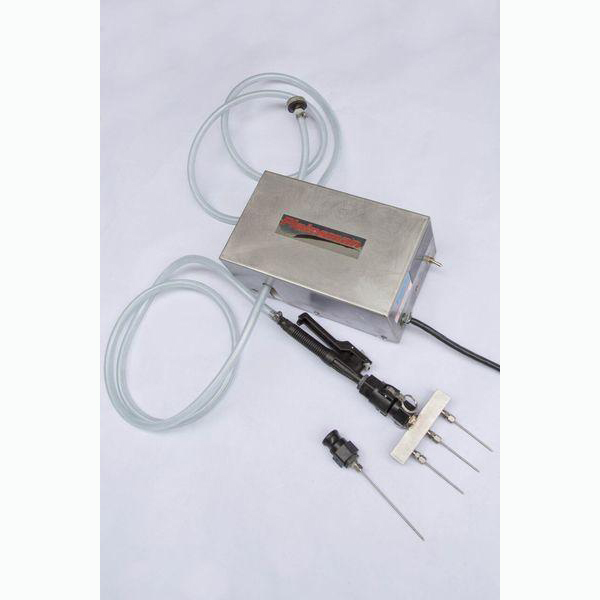 Electric brine pump, SS case and needles, quick change adapter for switching from single to optional 3 needle attachment. Contact us for more details”